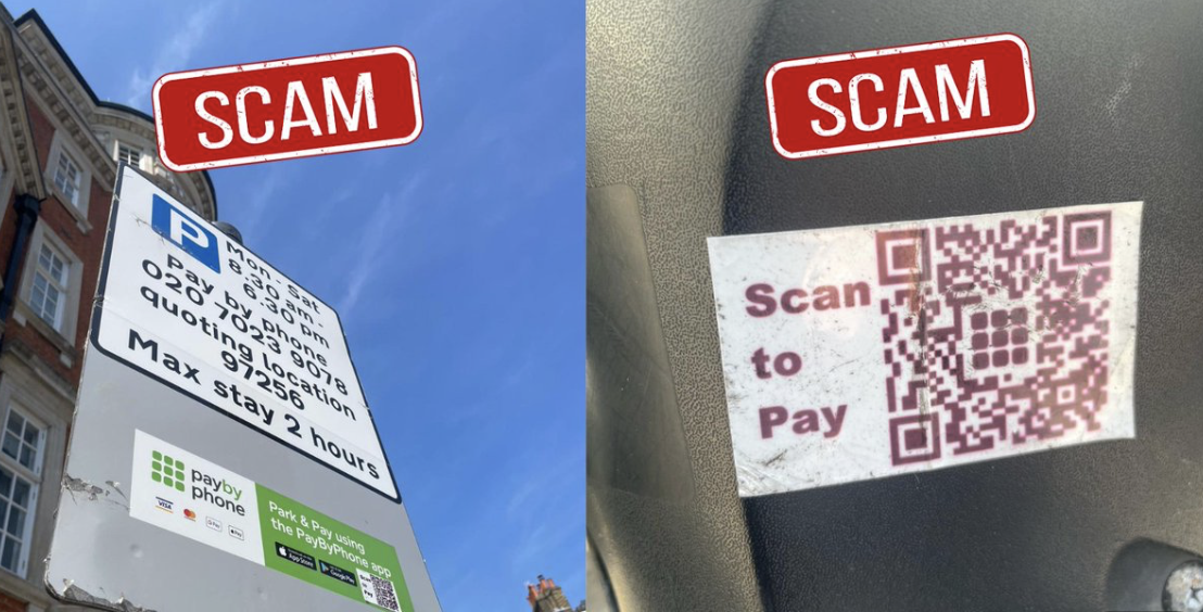 Fake QR codes on 'Pay to Park' signs - please ensure you do not use these to pay for parking.